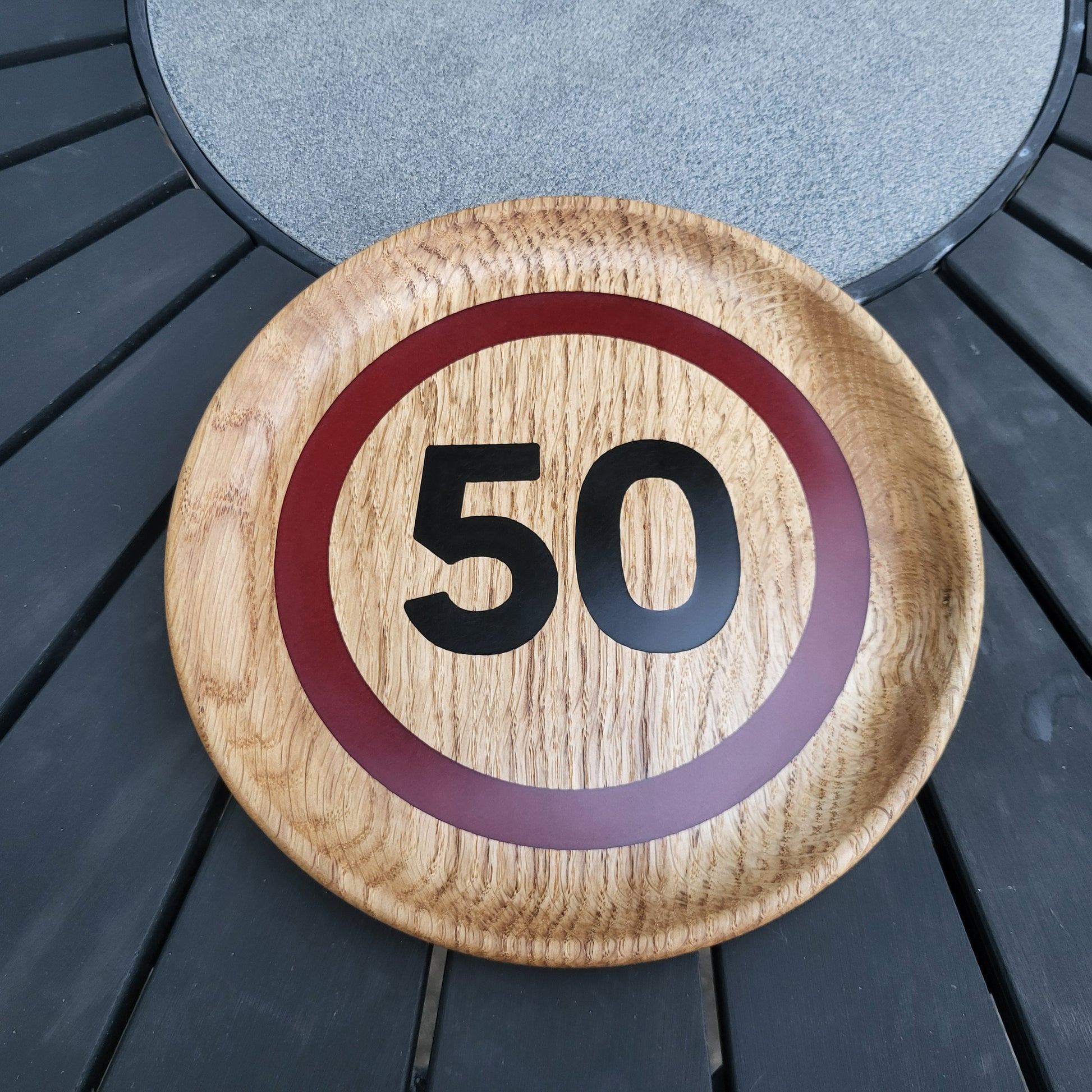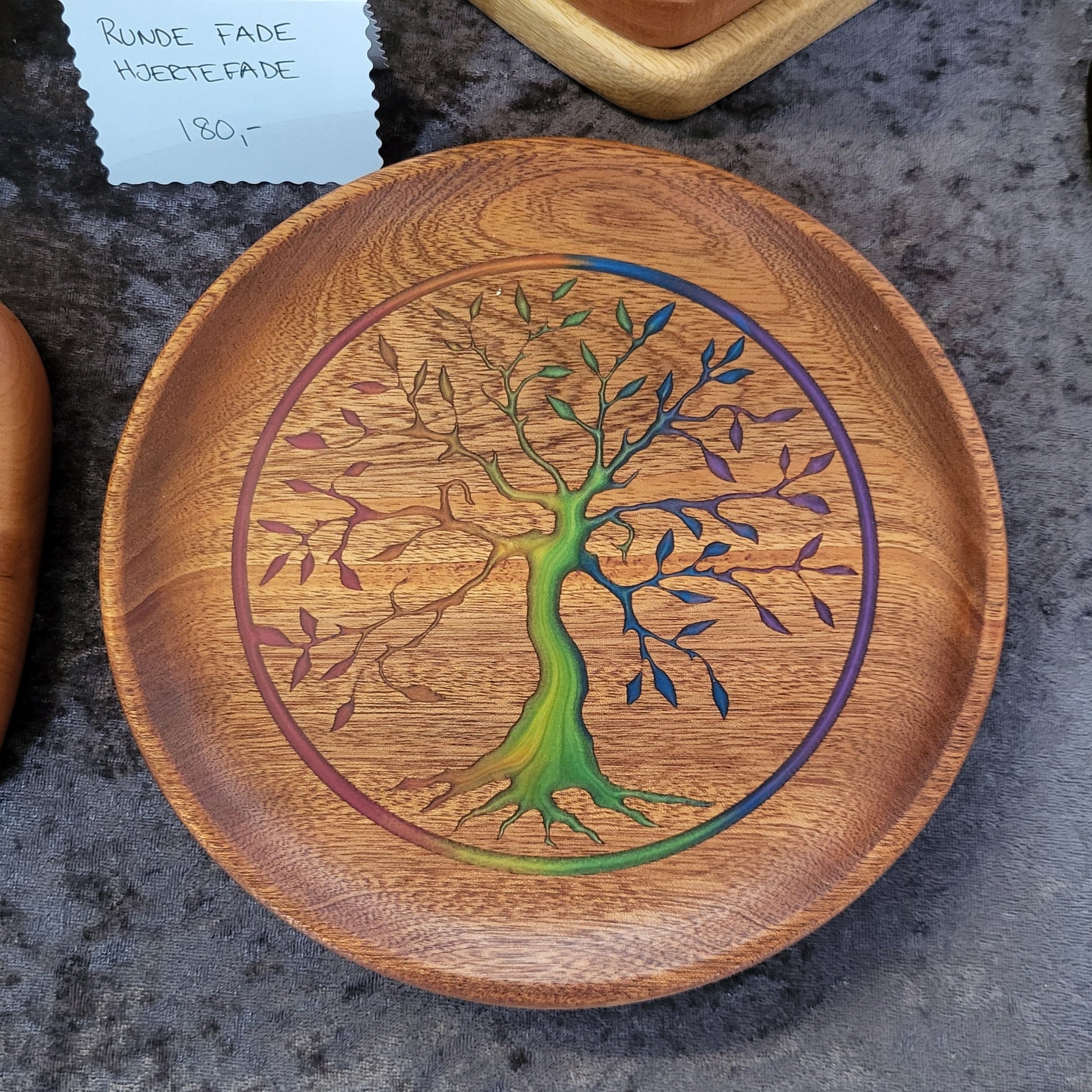 Dekorativ bakke med epoxyfyldt gravering